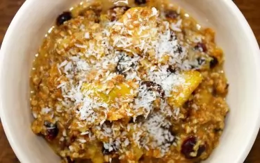 Продукти: 1 ч.ч. ориз, 1 ч.ч. елда, 1 ч.ч. белено просо, 3 глави кромид лук, 3 моркова, 100 г цвекло.