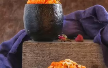 Продукти: 2 ч.ч. настъргани моркови, 2 ч.ч. прясно мляко, 2 с.л. масло, 6-7 с.л. захар, 5 зърна кардамон, 50 г стафиди, 2 с.л. счукани бадеми, 2 с.л. кашу.