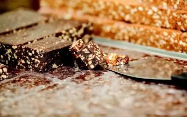 Продукти: 500 г печени и обелени ядки без сол (бадеми, орехи, фъстъци). 300 г захар, 300 г течен светъл мед, 2 белтъка.