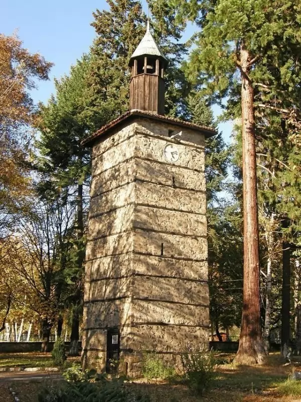 възрожденска часовникова кула в България. Впечатлява с барокови елементи и стенописи, украсяващи вълнообразните ѝ корнизи. Построена е през 1866 г. от местния майстор строител Вуно Марков. През 2006 г. е обявена за архитектурно-строителен паметник на културата и е включена в списъка на 100-те национални туристически обекта.