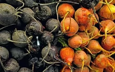Продукти: 500 г, червено цвекло, обелено и нарязано на ленти. Заделя се част от него за стъргане,  2 моркова, нарязани на ленти, половин глава ряпа, нарязана на ленти, половин пащърнак, нарязан на ленти, 100 г керевиз, нарязан на ленти, 1 картоф на кубчета, 500 г прясно зеле на ситно, половин стрък праз, само бялата част, 2,5 л зеленчуков бульон, 2 с.л. доматено пюре, черен пипер за зърна, 1 дафинов лист, 2 с.л. балсамов оцет, 1 ч.л. захар, олио.