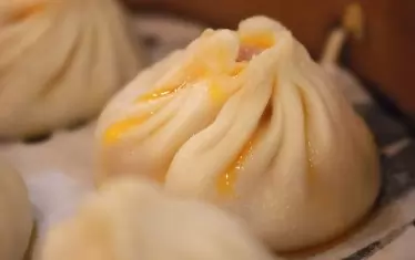 Продукти: 300 г брашно, 100 мл гореща вода, 50 мл студена вода, 1 с.л. олио. 150 г смляно свинско месо, 5 с.л. ситно нарязани бамбукови кълнове, 2 с.л. светъл соев сос, 1 с.л. оризово вино (или сухо шери), 1 с.л. захар, 1 ч.л. сусамово олио, 1 с.л. царевично нишесте.