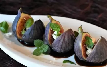 Продукти: 8 зрели смокини, 50 г козе сирене, 4 с.л. мед, зехтин.