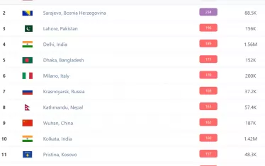 Тези данни нареждат днес София на първо място по замърсяване на въздуха. На второ място отново е балканска държава - Сараево в Босна и Херцеговина, на трето място е Лахор в Пакистан.