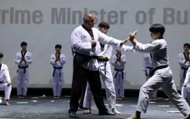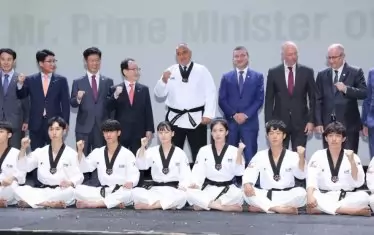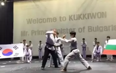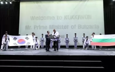 Посещението на Борисов в Световното седалище на бойното изкуство таекуондо започна с излъчването на кратък филм, представящ „Кукиоан,“ и с демонстрация на изкуството, като в края на изпълнението от участниците в изпълнението бяха опънати българският и южнокорейският флаг.