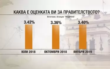 3,40 по шестобалната система е оценката за правителството, показват данните сред жителите на градовете. От „Медиана” правят сравнение, че през юли 2018 г. тя е била 3,42, а през октомври миналата година – 3,36.