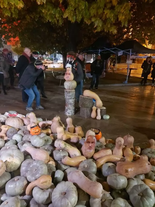 Пред голямата купчина тикви е поставена най-голямата и зряла тиква с поставени на нея пера, символизирайки индиански вожд. На място има и дръвници, на които се режат други тикви, съобщи БГНЕС. Инициаторите на днешната акция са осигурили и маркери, с които протестиращите надписват тиквите с каквито послания и рисунки пожелаят и по какъвто начин решат да изразят своя протест срещу премиера Бойко Борисов и срещу главния прокурор Иван Гешев. По-късно хората могат да отнесат тиквите вкъщи и да си ги сготвят. По този повод протестиращите обявиха: "Да сготвим Бойко", предаде БГНЕС.