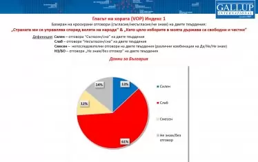 Но и без политическата нестабилност в страната ни през 2021 г., Индексът на демокрацията на световната асоциация „Галъп интернешънъл“ традиционно отрежда позиция на страната ни в по-скоро негативния край на скалата. Тази година 13% от българите смятат, че живеем в условия на силна демокрация, за 12% страната ни не отговаря на едно от условията за демократичност, а близо две трети намират нивото на демокрацията у нас за слабо.