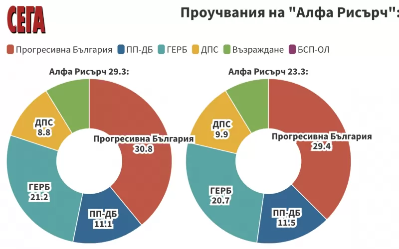 От данните на социолозите става видно, че ако изборите са днес, от твърдо решилите да гласуват, 30,8 на сто биха подкрепили листата на "Прогресивна България".