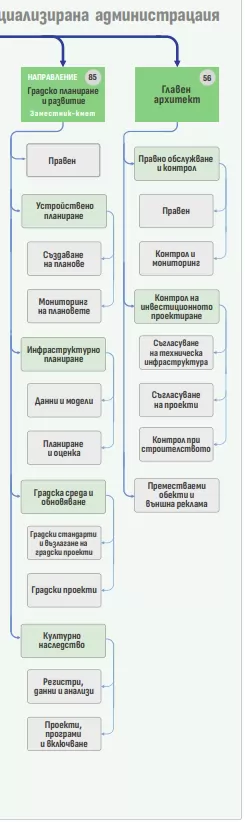 Предложената от кмета Васил Терзиев нова структура на общинската администрация, която предвижда силно намаляване на служителите към Направление "Архитектура и градоустройство" за сметка на назначаването на нов зам.кмет по градоустройството с голям екип ще доведе до изкуствено разделяне на функционално неделими дейности и до дублиране на звена. То създава опасност да се блокира устройственото планиране и проектиране, строителството, кадастъра, поддържането на архива. Промените в структурата правят впечатление на хаотични и без ясна цел и още по-лошото е, че структурата се нагажда към конкретни личности.