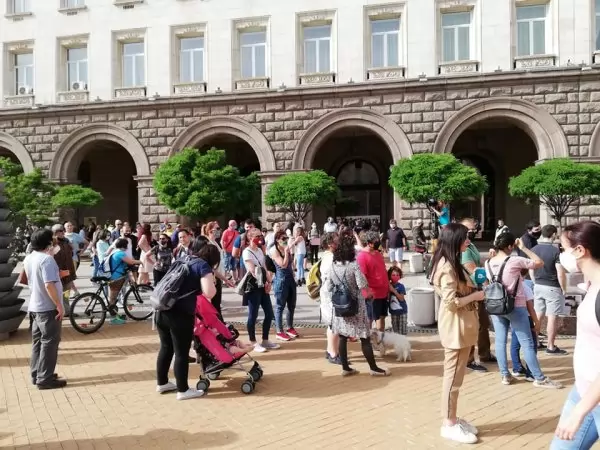 Той пък е мълчалив. Родители с деца стояха на слънце заради ограничителните мерки на силите на реда, които не допускаха гражданите на сянка под тунела. На място се събираха подписи срещу доизграждането на Националната детска болница върху 40-годишното скеле.