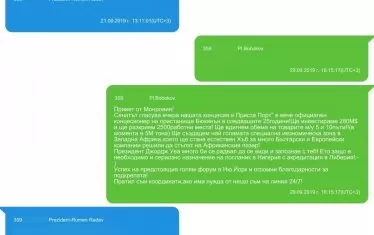 Президентът и бизнесменът си разменят и други съобщения, които обаче са заличени от прокуратурата. От държавното обвинение прилагат и разпечатка от изходящи и входящи съобщения от телефона на Бобоков, от която става ясно, че си е писал със съпругата на президента Десислава Радева. "Горното се публикува и с оглед поредно изнасяне на неверни твърдения в ефира на национална телевизия. Анализът на информацията, съдържаща се в изготвената експертиза и приложенията към нея, продължава", посочват от прокуратурата.