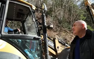 "Какво правите тук", обърна се той към друг работник. "Укрепваме пътя, беше пропаднал", отговаря човекът. "Укрепихте ли го?", пита пак Борисов. След утвърдителния отговор заключава: "Добре, доста техника има, така че да са спокойни хората и след 4 месеца да има асфалт".