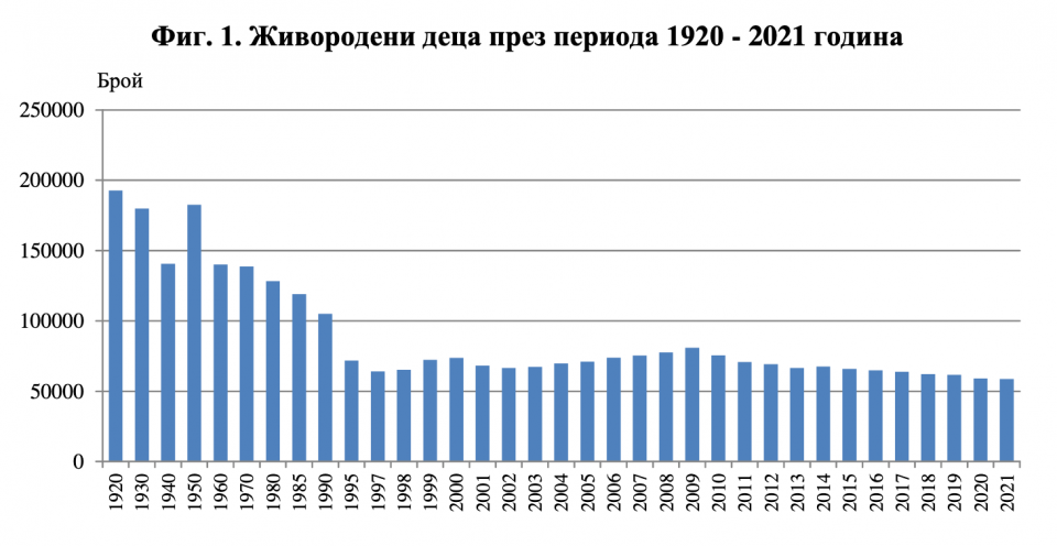 В най-тежката година на пандемията - 2021 г., България покачи още повече най-негативните показатели на своята демографска ситуация. Изолацията не е довела до бейби бум, напротив - родените бебета намаляват, макар и с незначителен процент. За сметка на това броят на починалите се увеличава трагично с 19,4%, а смъртността е 21.7‰ и остава най-висока в ЕС.