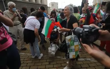 След този призив хората тръгнаха към правителствената сграда, като отново на няколко пъти бяха подканяни да пазят полицаите, които охраняват протеста. Минутки по-късно към МС полетяха домати и тоалетна хартия, които самите организатори от самонареклото се Отровно трио (Велислав Минеков, Арман Бабикян и Николай Хаджигенов) увериха, че са купили със свои средства.