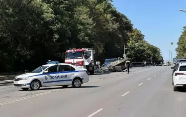 На място има също автомобили на пожарната и полицията. Движението в района е затруднено.