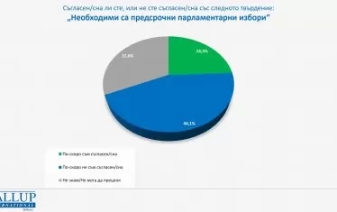 Към началото на май доверието в правителството е 26 пункта, а недоверието – 62.4 пункта. Оставка искат 35 на сто от анкетираните, но други 41.1 са на противоположното мнение. Останалите се колебаят. Перспективата за нови избори отблъсква хората. Само 24.3% искат такива, а 44.1% са против.