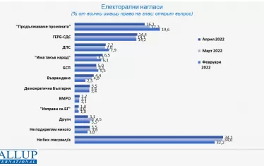 Това са основните изводи от новите данни от независимо изследване на „Галъп“, проведено сред 809 пълнолетни българи, в периода 31 март и 8 април.