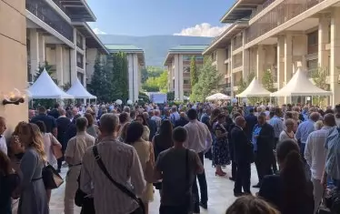 Пътят към входа на резиденция "Бояна", където в 11 ч започна националното прокурорско съвещание, свикано от главния обвинител Иван Гешев, беше блокиран. Акредитираните за събитието журналисти бяха трябваше да преминат през три КПП-та. Главният прокурор посрещна лично всеки от участниците в съвещанието на входа на сградата.