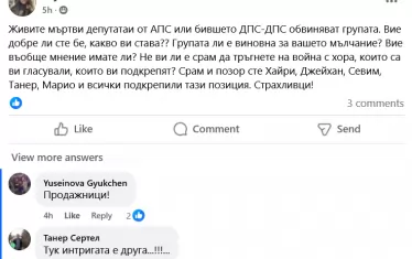 Във "Фейсбук" групата реагираха с гняв. "ПГ на АПС, ППС, ДДС – фалшивите пазители на истината ... това не е политическа позиция, а акт на страх ... Истината е проста: вие сте станали за смях. И не за първи път", написа модераторът Фахредин Молламехмед. "Срещу нито един избягал кмет не писахте, срещу Чакъров, срещу момчето не писахте, но за обикновените хора ви стига куража!", включи се и другият модератор Елван Атилла. Сред активистите избуяват и съмнения, че всъщност АПС иска да ликвидира "Фейсбук" групата, за да облагодетелства Пеевски.