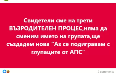 Враждите в крайно оределия лагер на Ахмед Доган се задълбочават, с което само се засилват позициите на съперника му Делян Пеевски. Поддръжниците на Доган от доста време са видимо разделени – от едната страна е смаляващата се парламентарна група на АПС (която доскоро се казваше ДПС-ДПС, докато с решение на депутатите това име й беше отнето – бел.а.), а от другата са също все по-малобройните активисти в страната. Сега те се сблъскаха по възможно най-дребнавата причина – името на "Фейсбук" групата "Аз подкрепям Ахмед Доган".