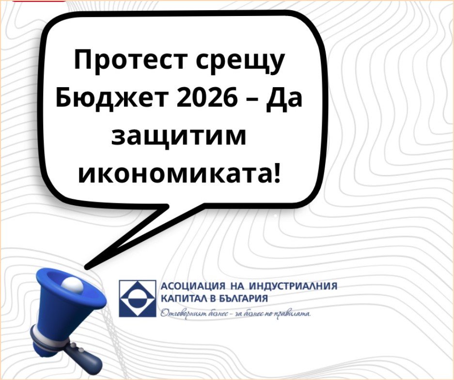 Асоциацията на индустриалния капитал в България (АИКБ) официално призова малки и големи фирми, предприемачи, самонаети, работещи да излязат на масово на протест срещу проектобюджета за 2026 г. в сряда вечерта.