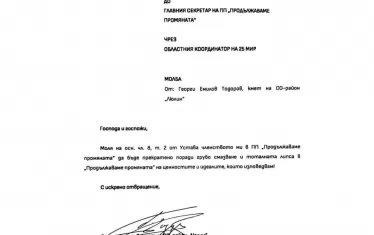 Димитър Шалъфов подчерта, че „промяната" се оказа, че е само в размера на процентите. „Заявявам, че прекратявам членството си в ПП. Ние всички видяхме и разбрахме, че ценностите, идеалите и принципите, които са залегнали в устава, са само на хартия", каза той и съобщи, че оттук нататък ще бъде независим общински съветник в Столичния общински съвет (СОС).