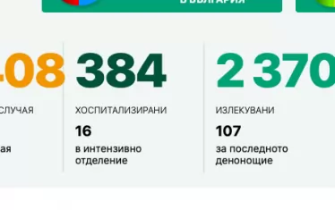 Хоспитализираните вече са 384, от тях в интензивни отделения се намират 16. Починалите през последното денонощия са двама, а излекуваните 107.