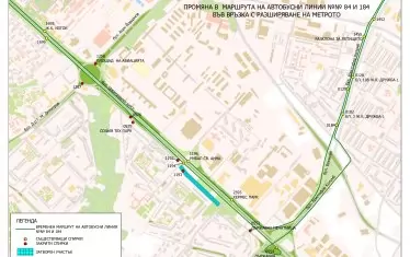 Автобусите ще спират на всички съществуващи автобусни и тролейбусни спирки в променения участък.