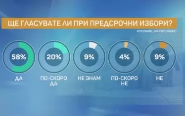 58% от анкетираните декларират, че ще гласуват на предсрочните парламентарни избори на 11 юли, а 20% декларират, че по-скоро ще го направят. Само 9% заявяват твърдо, че няма да гласуват.