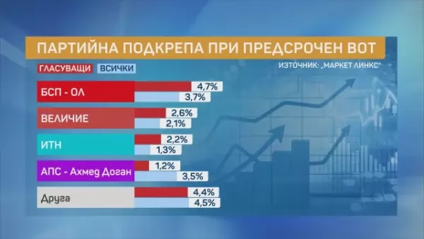 Наблюдава се мобилизация на подкрепящите ПП-ДБ. „Възраждане“ остават устойчиви, а при „ДПС-Ново начало“ също има спад с около 4%. Под 4-процентната бариера, ако изборите бяха днес, остават „Величие“, „Има такъв народ“ и АПС.