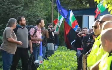 Протестиращи се събраха край Народното събрание преди днешното извънредно заседание на депутатите.