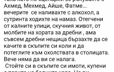Още по-гневен и драматичен беше друг, анонимен член на групата. "Сбогом, Доган, сбогом и на бедните души с много пари, коли, къщи и одежди! Дано да сте щастливи, ама май, май не сте. Вече сте само едни слуги, общността малко ли ви слугува .. 35 години. Сега е ваш ред да сте слугинаж... и то на кого. Само при избори се вясвахте по регионите и ей така, като по сценарий се ръкувахте с Ахмед, Мехмед, Айше, Фатме ... вечерите се наливахте с алкохол, а сутринта ходихте на намаз. Отегчени от калните улици, скучния живот, от молбите на хората за дребни, ама съвсем дребни нещица, бързахте да се качите в скъпите си коли и да потеглите към охолствата в столицата. Вече няма да ви се налага. Стойте си в скъпите си имоти, купени с парите на бедните хора. Не ви завиждам, само ви съжалявам - ПРЕДАТЕЛИ. Вече няма комисионни, няма субсидии, няма, няма, няма. Сигурно всяка вечер сънувате белезници и килии. Няма да ви простим - НИКОГА. Проклети да сте!!!"