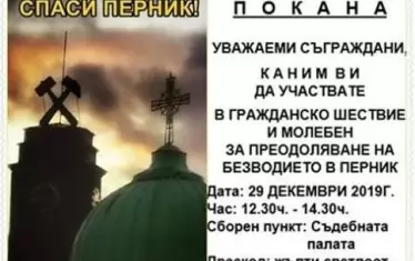 Стотици жители на Перник отново излязоха на протест с искания да бъдат разкрити виновниците за безводието в града и решаване на проблема в най-кратки срокове. Те облякоха жълти жилетки и скандираха "Искаме вода!" и "Оставка", а хората демонстрираха из града в студения декемврийски ден, като стигнаха до храма „Св. Иван Рилски“, където бе отслужен молебен за дъжд, предаде БГНЕС.
