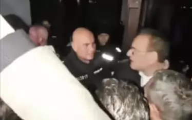 От разпространените видеа става ясно, че органите на МВР изискват гражданите да напуснат сградата, а "народните представители могат да останат".