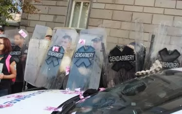 Журналисти съобщават, че полицията пръска газ. Домати, стотинки и дори камъни летят към униформените. Хора си мият лицата заради обгазяването. Всичко това се случва на една гореща точка на площада - близо до входа на сградата. В останаите райони е спокойно.