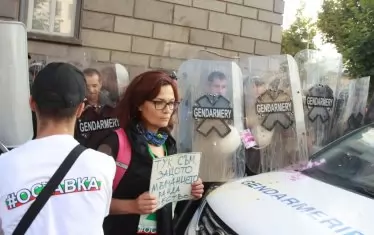 Преди това денят беше изпълнен с напрежение. Голям екшън се случи на ул. "Леге" към 13.30. Улицата е блокирана от двете страни от протестиращи и полицаи. В средата има полицейски бус. Хората искат униформените да освободят арестуван човек. Скандират "Пуснете го!", а десетина полицаи пазят вратата на буса.