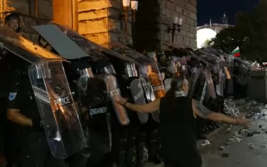Униформените изтласкаха хората от сградата и образуваха обръч почти до сградата на Министерски съвет. Някой от протестиращите отвърнаха с хвърляне на стъклени бутилки и други предмети към полицаите. Бяха пуснати и димки, отново имаше хвърлени павета, както сутринта. В отговор към тълпата се насочи водно оръдие, в готовност да влезе в действие. След нов опит за агресия от страна на неколцина протестиращи, тълпата бе изтласкана още по-далеч, до сградата на Президентството. Има и задържани.