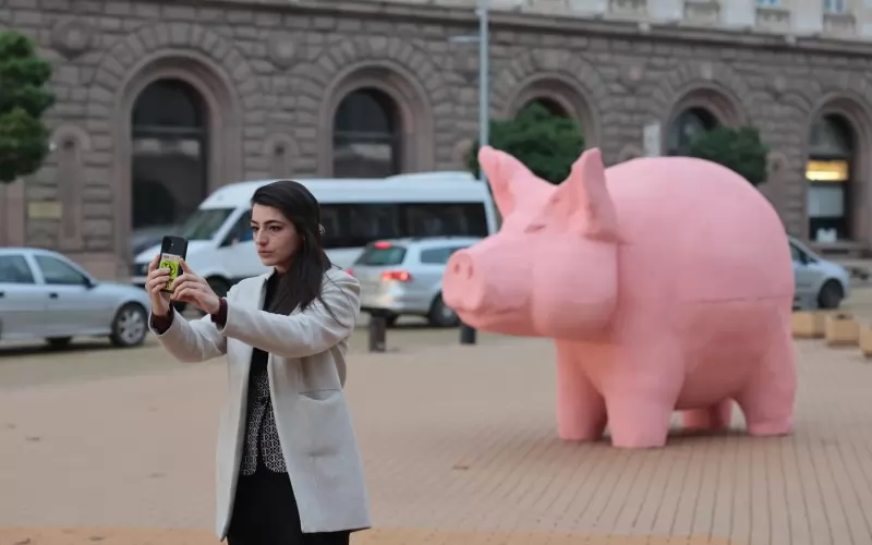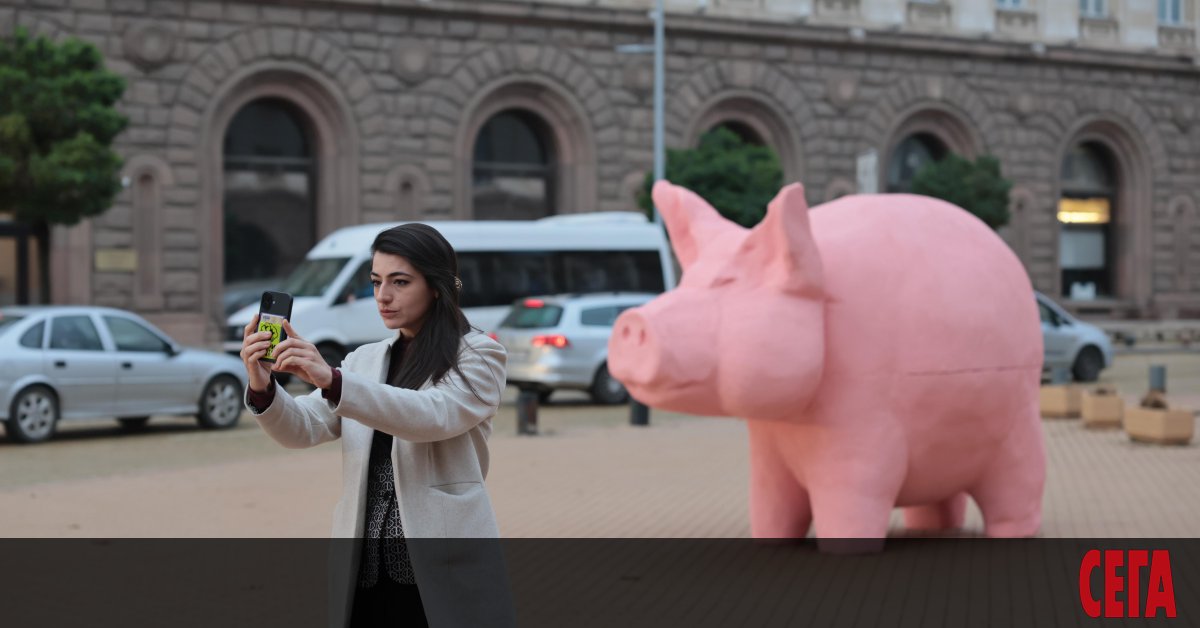Нетрадиционна арт-инсталация - "прасе касичка" - посрещна днес депутатите пред парламента по повод разглеждането на Бюджет 2026.