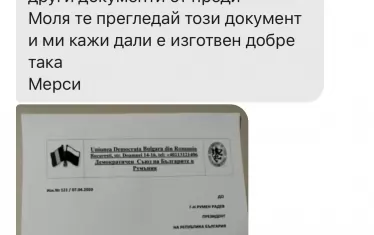 На 11 май 2020 г. Pepi- Ro изпраща на П.Б. снимка със съдържание на чужд език, касаещо решение на румънските съдебни власти. На 12 май 2020 г. в 12.10 ч. П.Б. препраща снимката на Prezident-Pl. Uzunov. В 12.13 ч. П.Б. пише на Pepi- Ro съобщение: „Трябва официално извлечение от румънския съд и превода му на български!“