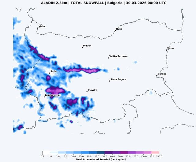 През нощта времето ще е облачно с валежи от дъжд, в планините и планинските райони от сняг. В Западна България ще духа слаб до умерен северозападен вятър, а в останалата част от страната - от изток-югоизток. Минималните температури ще бъдат между 3° и 8°, за София – около 4°. Утре преди обяд на много места в Южна България валежите временно ще спрат и облачността ще се разкъса и намалее. След обяд отново ще се увеличи, ще е предимно купесто-дъждовна и ще завали, на места в южните и източните райони ще прегърми. В Западна България ще продължи да духа слаб до умерен северозападен вятър, докато в останалите райони постепенно ще се ориентира от север-североизток. Максималните температури ще са между 11° и 16°, за София – около 10°.