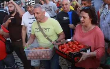Тази вечер за 32 пореден ден се проведе протест и в триъгълника на властта на площад "Независимост" пред Министерския съвет. Демонстрантите отново хвърляха домати и яйца по правителствената сграда. По-късно протестното шествие стигна до Орлов мост, а след това продължи по бул. "Цариградско шосе". Протестиращите носят факли и скандират "оставка". Движението по булеварда е блокирано до хотел "Плиска".