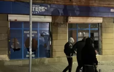 Провокатори разбиха партийния клуб на партия ГЕРБ на "Дондуков" и използваха столовете в залата за атака срещу полицаите.