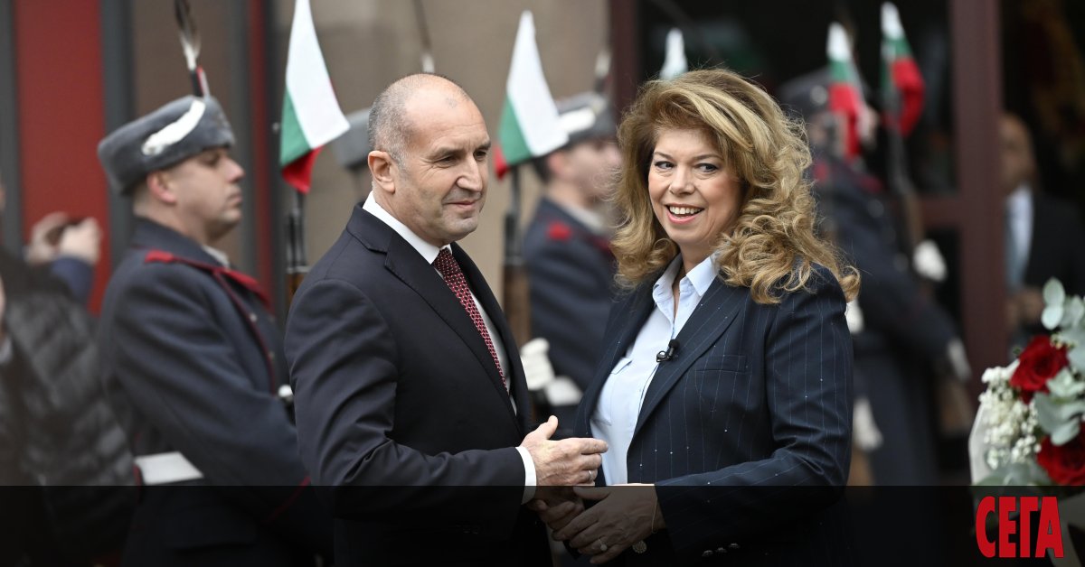 След като Конституционният съд освободи Румен Радев като президент, той напусна официално и президентството. Вече бившият държавен глава бе изпратен през парадния вход на "Дондуков" 2 по червен килим от заместничката му Илияна Йотова, която стана първата жена президент на България.