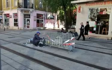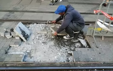 По-късно днес от общината са изпратили човек да отстрани проблема и така започна ремонт на ремонта на ремонта. Надигнатите плочки са отстранени, за да не пречат на трамвайното движение и се полагат за пореден път.