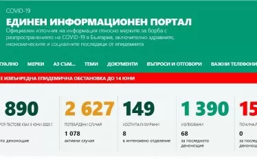 Активните случаи са 1078. В болница са 149 пациенти, като 8 от тях са на интензивно лечение, е посочено още на сайта. Там пише още, че за изминалите 24 часа с 68 са се увеличили излекуваните. Техният брой вече е 1390.