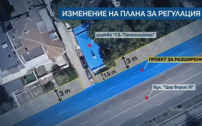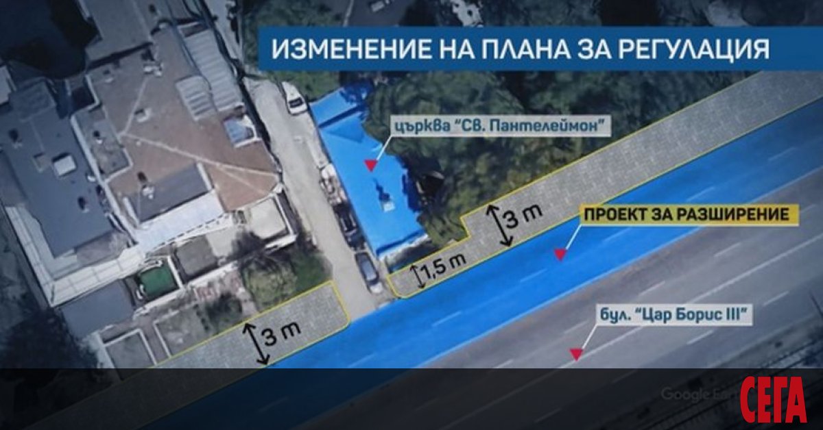 Тротоар край столичния булевард "Цар Борис III" е предвиден да мине през църквата "Св. Панталеймон", е видно от проект за регулация, качен официално на страницата на столичното направление "Архитектура и градосутройство".