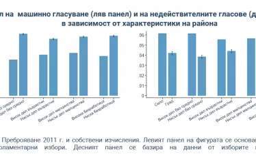 В същото време, изследването категорично показва, че увеличение с 10 на сто в дела на машинния вот води до спад от 0.25 на сто при недействителните бюлетини. Ефектът е по-силен в райони, в които първоначално делът на невалидните гласове е бил по-висок – в секции, разположени в социално-икономически уязвими райони. В тези райони е най-голяма ползата от употребата на машините. Както се каза, точно там устройствата се използват най-рядко.