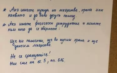 Извън това на много места в столичните кооперации са разлепени бележки, на които се предлага помощ на по-възрастните съседи или изпаднали в нужда при възникналата ситуация.