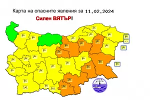 Предупреждението е за областите Видин, Монтана, Враца, Плевен, Ловеч, Пазарджик, Пловдив и Сливен, където поривите на вятъра могат да достигнат над 100 км/час.